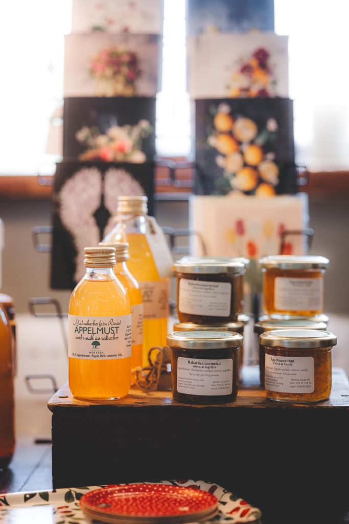 Varje morgon hämtar vi nybakat surdegsbröd och bullar från prisbelönta Rådmansö Bageri som ligger i Södersvik strax utanför Norrtälje. Vill du baka själv så har vi ekologiskt mjöl på kulturspannål odlat av Jädra Prästgård i Upplands-Bro. Under säsong får vi grönsaker från lokala odlare och vi har alltid färska ägg från Tarby Gård i Vallentuna. I våra frysar hittar du kött, chark och glass och kylarna är fyllda med bland annat ost, syrade grönsaker, salami, kombucha och tempe. Vi har såklart ett riktigt stort utbud av äppelmust från Norrtelje Musteri, som ligger i byggnaden intill, men här finns även gott om andra drycker som öl, läsk, tonic och kombucha. Ibland har vi färsk mjölk från Öster Grytinge Gård.